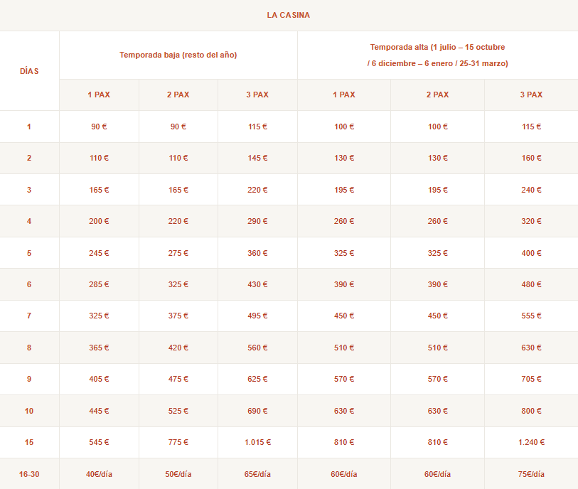 La Casina está compuesta por un coqueto salón, cocina americana, cuarto de baño y una habitación doble. Existe la posibilidad de instalar una cama supletoria…